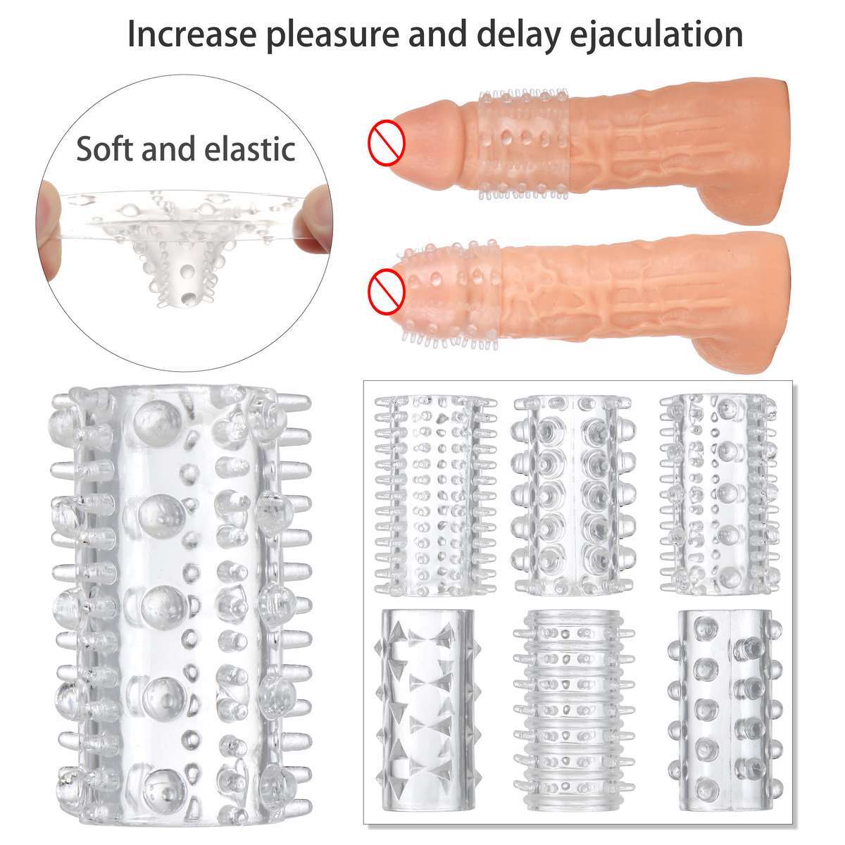 Penis Sleeve Reusable Condom Penis Extender With Ball Loop Enlarger Delay Ring